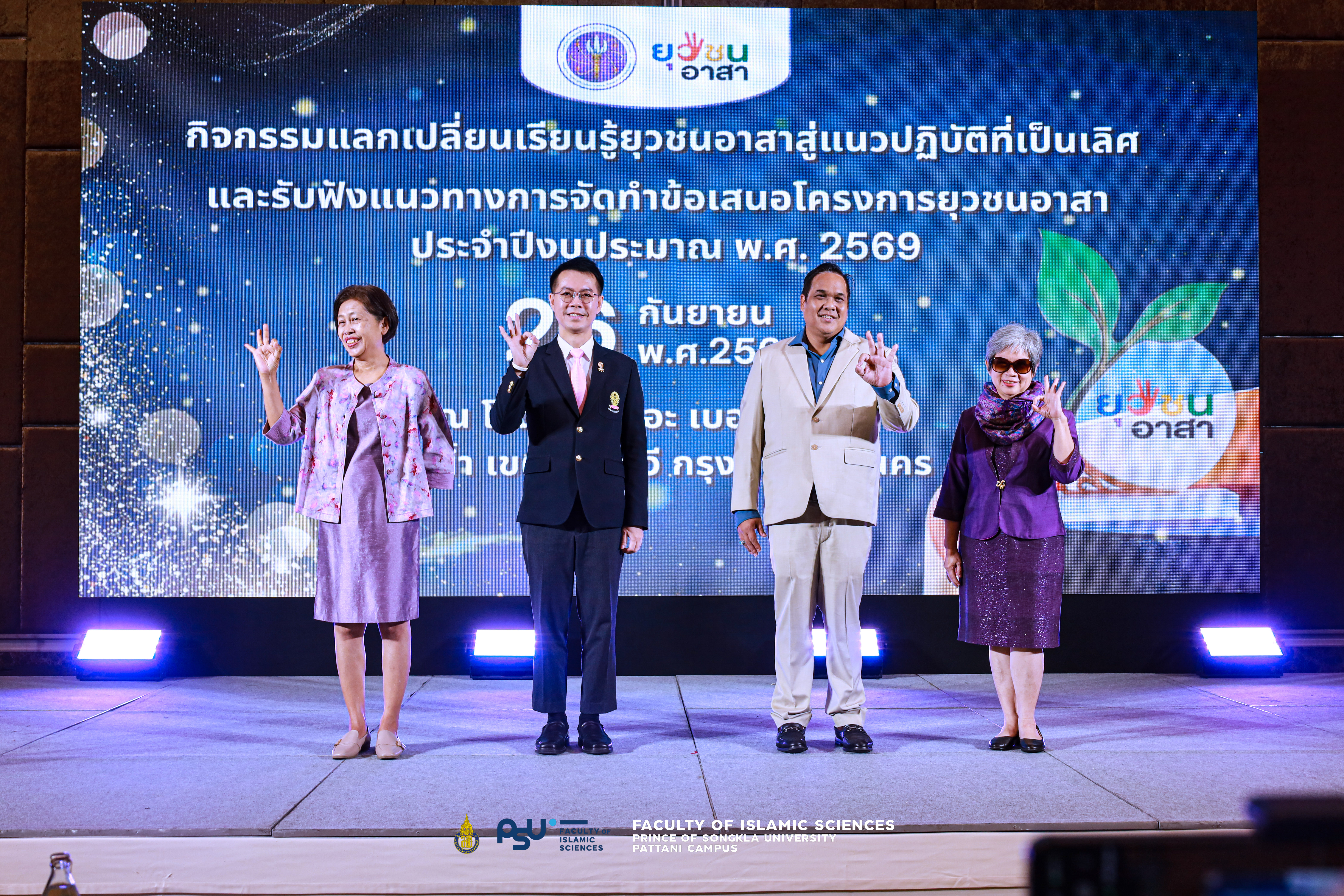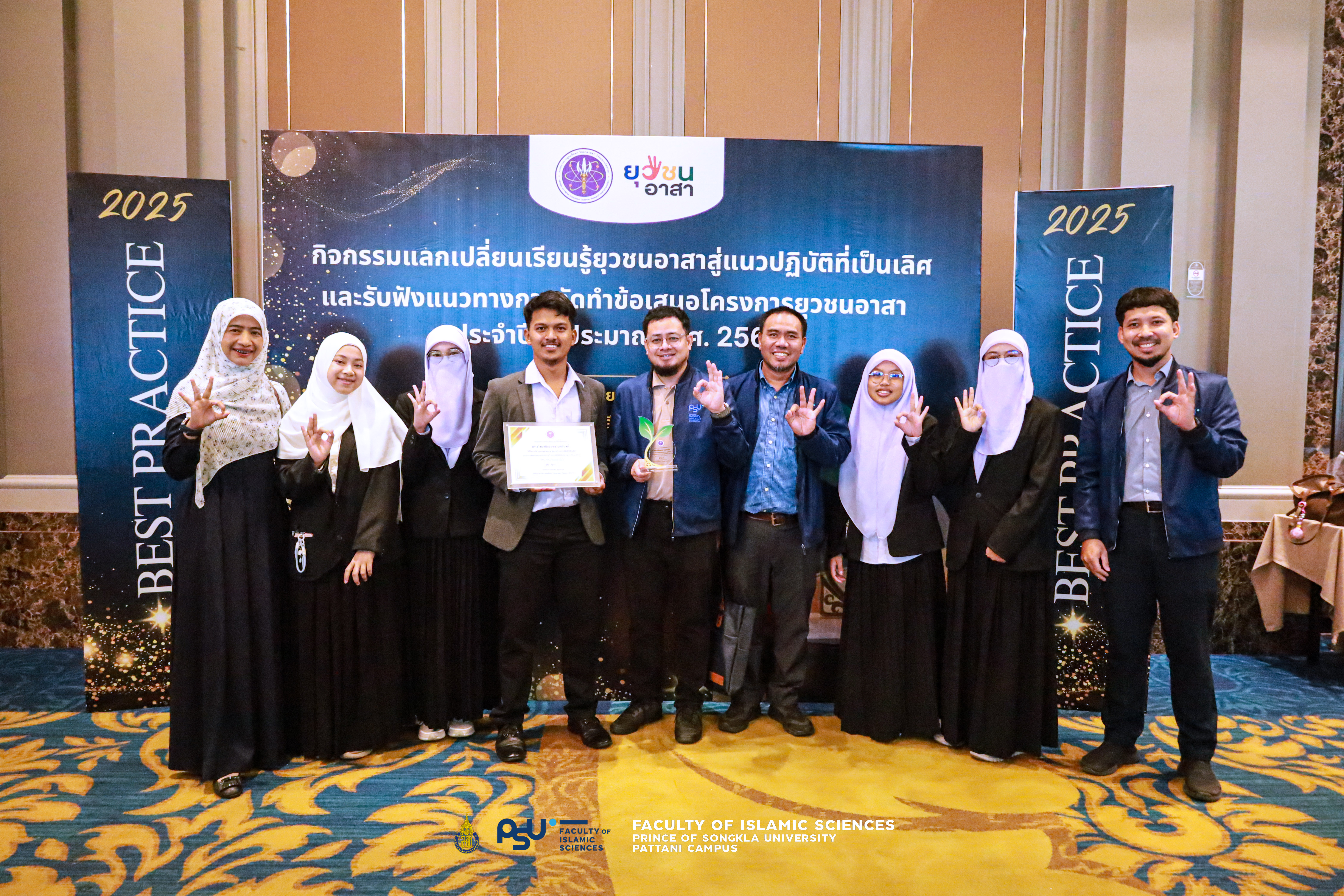 มหาวิทยาลัยสงขลานครินทร์ วิทยาเขตปัตตานี สร้างชื่อเสียงในเวทีระดับประเทศ เมื่อคณาจารย์ บุคลากรและนักศึกษานำผลงานเข้าร่วมจัดบูธแสดงผลงานและขึ้นรับรางวัล 1 ใน 4 Best Practice จากกระทรวงการอุดมศึกษา วิทยาศาสตร์ วิจัยและนวัตกรรม (อว.) ในกิจกรรมแลกเปลี่ยนเรียนรู้ยุวชนอาสาสู่แนวปฏิบัติที่เป็นเลิศ (Best Practice) และการรับฟังแนวทางการจัดทำข้อเสนอโครงการยุวชนอาสา ประจำปีงบประมาณ 2569 จัดขึ้นเมื่อวันที่ 26 กันยายน 2568 ณ ห้อง Jubilee Ballroom ชั้น 11 โรงแรมเดอะ เบอร์เคลีย์ โฮเต็ล ประตูน้ำ กรุงเทพมหานคร