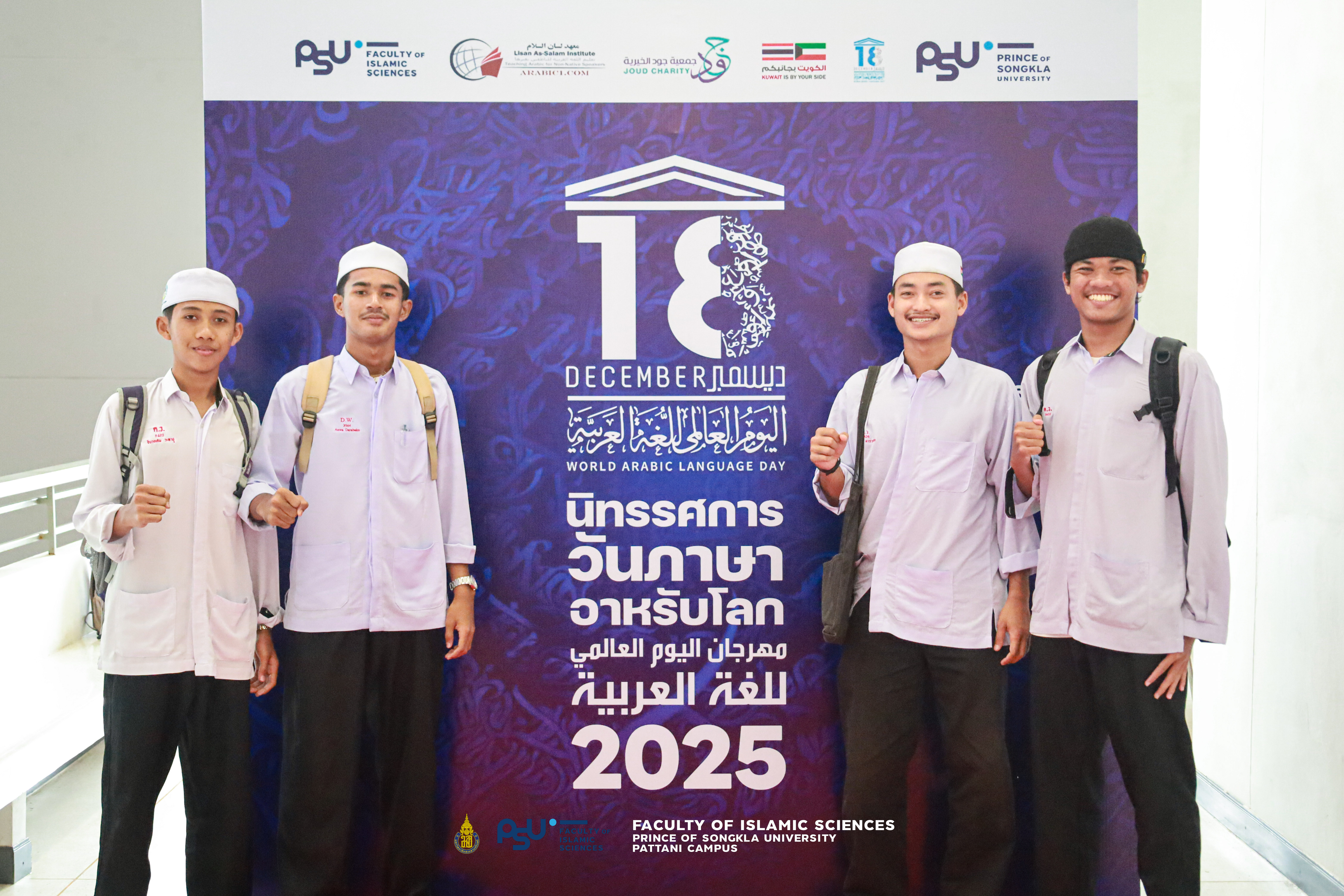 คณะวิทยาการอิสลาม มหาวิทยาลัยสงขลานครินทร์ วิทยาเขตปัตตานี โดยศูนย์ทดสอบและพัฒนาทักษะภาษาอาหรับ จัด นิทรรศการวันภาษาอาหรับโลก ครั้งที่ 8 ณ หอประชุมใหญ่ ชั้น 2 อาคารพรีคลินิก คณะวิทยาศาสตร์และเทคโนโลยี เพื่อส่งเสริมการเรียนรู้ภาษาอาหรับ พัฒนาทักษะและศักยภาพของผู้เรียน ตลอดจนสร้างพื้นที่การเรียนรู้และการแลกเปลี่ยนประสบการณ์ด้านภาษาอาหรับให้แก่นักเรียน นักศึกษา และผู้สนใจทั่วไป โดยมีผู้เข้าร่วมงานจากทั้งโรงเรียนและสถาบันอุดมศึกษาจากหลากหลายสถาบันให้ความสนใจเข้าร่วมกิจกรรมอย่างคึกคัก