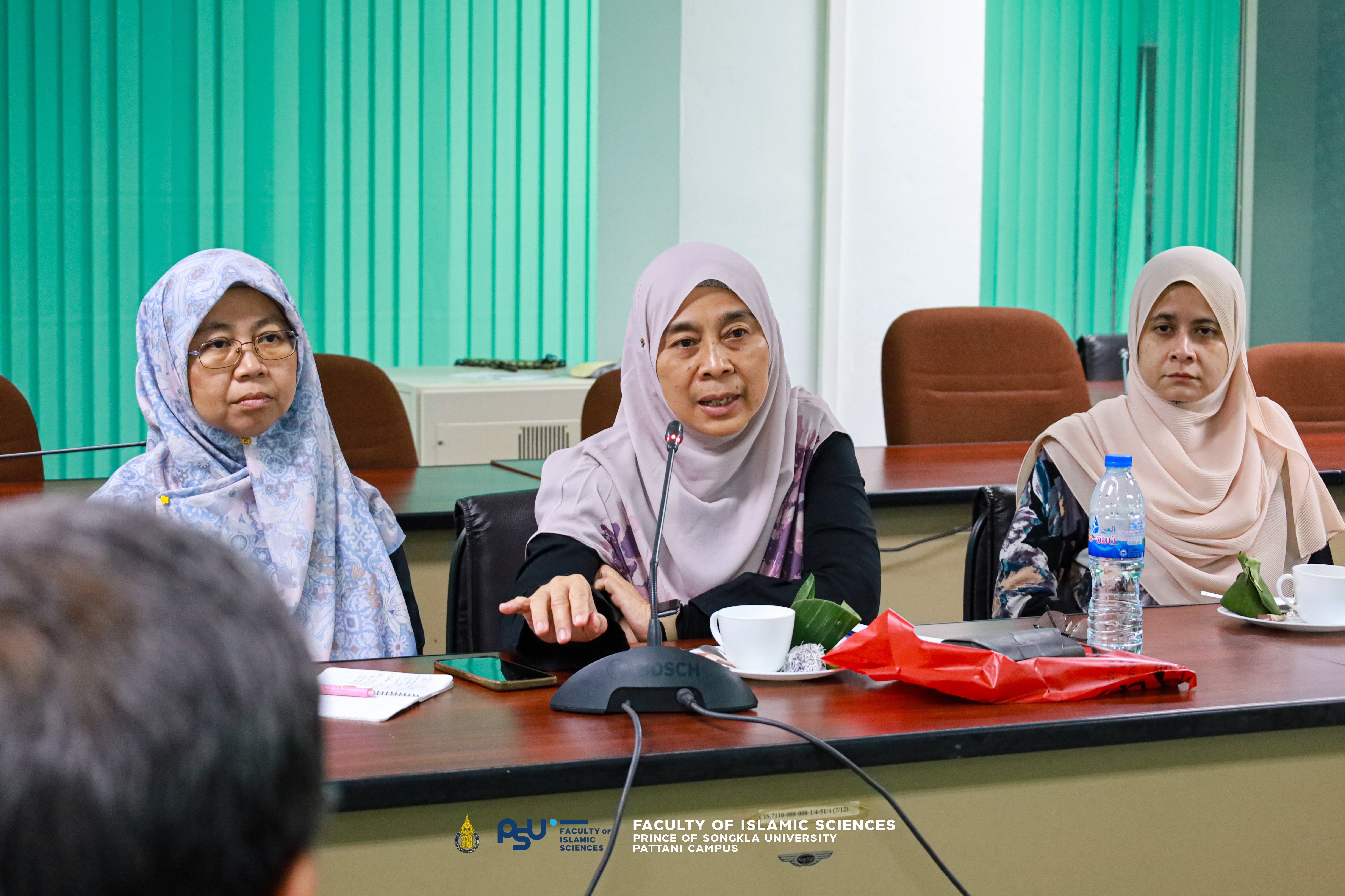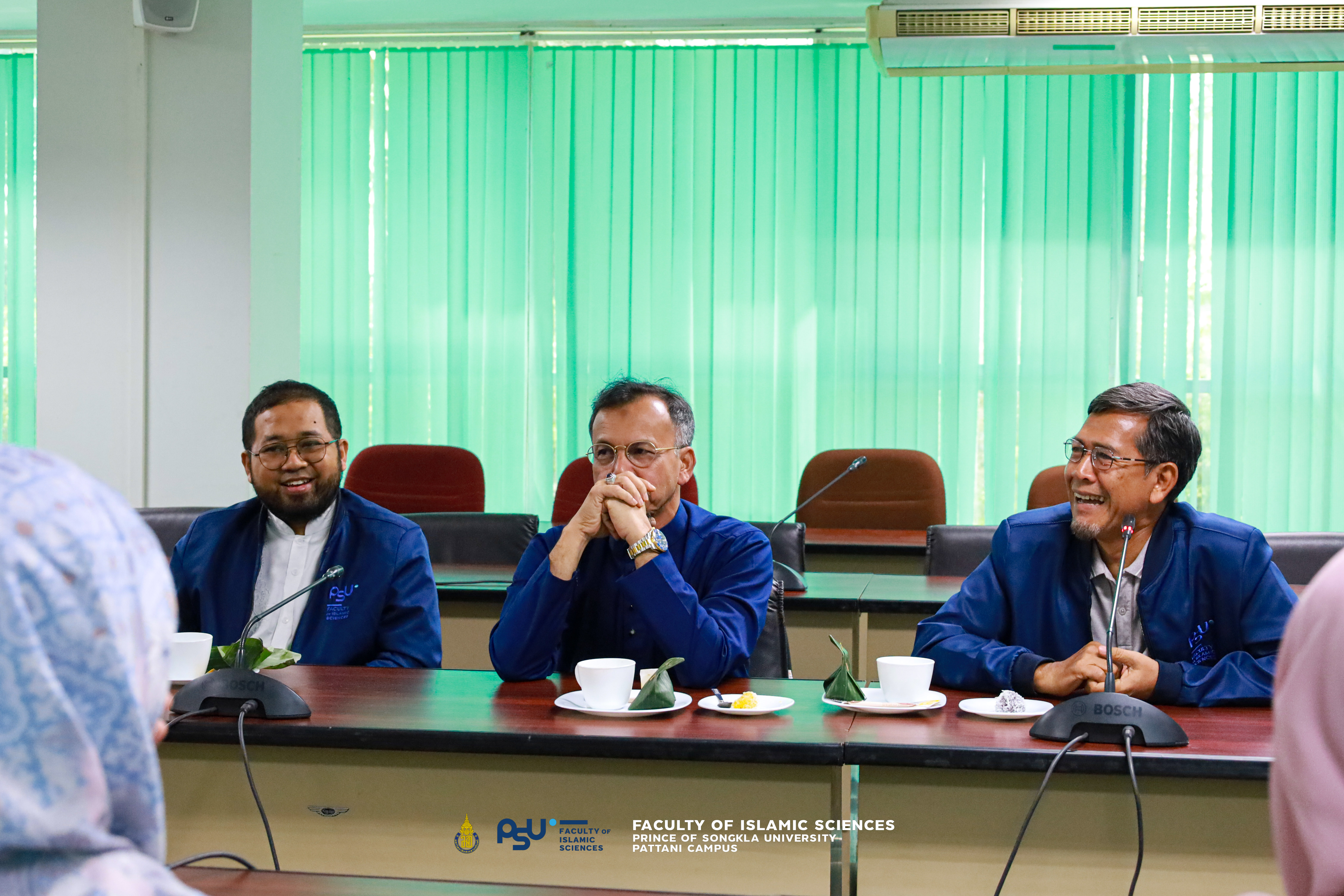 คณะวิทยาการอิสลาม มหาวิทยาลัยสงขลานครินทร์ นำโดย ผู้ช่วยศาสตราจารย์ ดร.มูหัมมัดรอฟลี แวหะมะ คณบดีคณะวิทยาการอิสลาม พร้อมด้วย ศาสตราจารย์ ดร.อิบรอฮีม ณรงค์รักษาเขต กรรมการสภามหาวิทยาลัย และ ดร.อริศ หัสมา รองคณบดีฝ่ายวิชาการและพัฒนาศักยภาพนักศึกษา ร่วมให้การต้อนรับ Prof. Dr. Nurul Fadzlin Hasbullah ผู้ช่วยรองอธิการบดีฝ่ายวิชาการและวิเทศสัมพันธ์ จาก International Islamic University Malaysia (IIUM) พร้อมคณะ ในโอกาสเดินทางเยือนคณะวิทยาการอิสลาม โดยการเยือนครั้งนี้มีผู้แทนจากหลายคณะร่วมเดินทาง เพื่อสานต่อความสัมพันธ์ทางวิชาการระหว่างสองสถาบันที่มีมาอย่างยาวนานหลายทศวรรษ